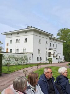 Sista punkten på programmet var en promenad i stadsparken där Sven Forsman med all sin kunskap om Hjo lotsade oss fram. Han har tidigare bott i ett av de vackra gamla husen, Villa Olga. Alla husen i parken har kvinnonamn. Husen är K-märkta och renoveras varsamt! Idag är det hyresrätter där det tidigare har varit bostäder till de högre stånden.