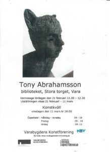 Vi startar våren med Tony Abrahamsson vernissage 21 februari på biblioteket i Vara kl 11.00