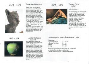 Obs! 19/4-17/5 Vänersborgs konstgrafiska verkstad utställning på biblioteket i Vara. Tiden förlängs till 17/5.